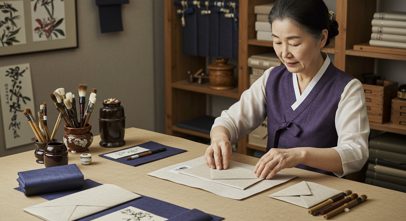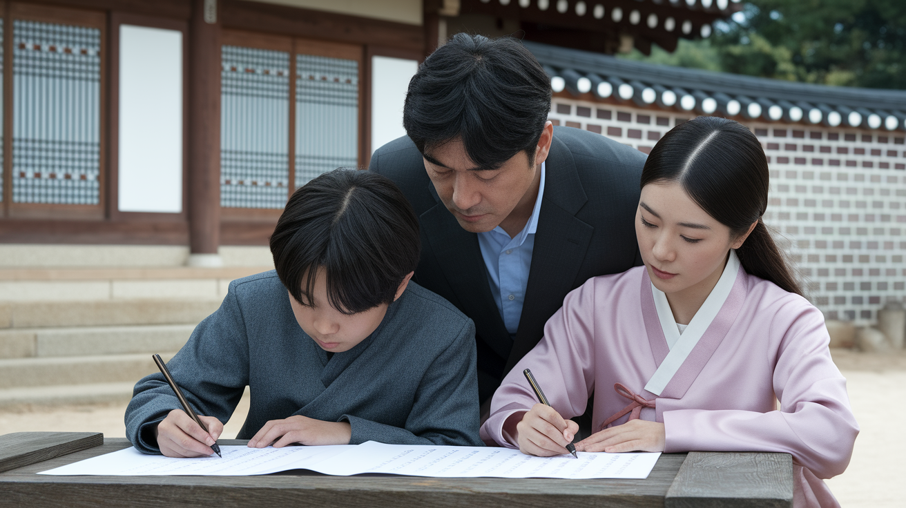 • 붓 또는 검은 펜으로 한지에 작성 (정중하게)