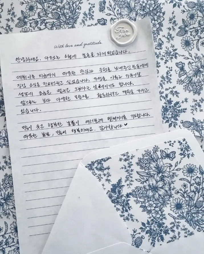 결혼 소식을 손편지로 알렸다는 것, 팬들이 특히 오래 이야기한 부분이 바로 여기였습니다.