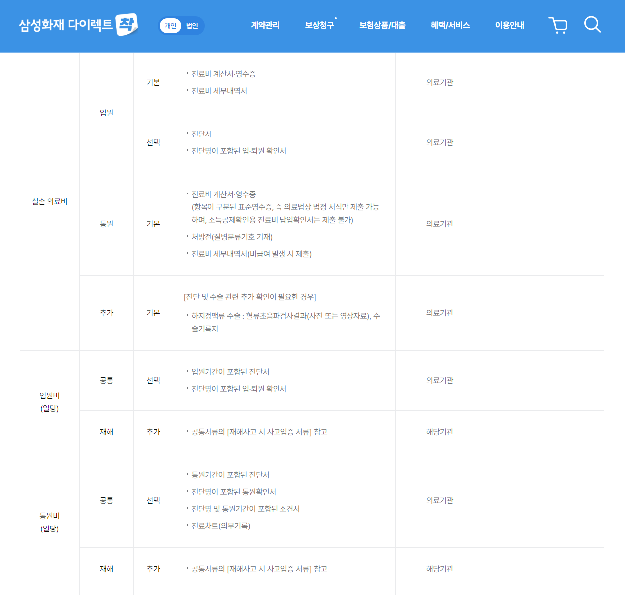 - 청구 유형별로 진단서·입퇴원확인서·약제비 영수증 등 추가 서류 준비