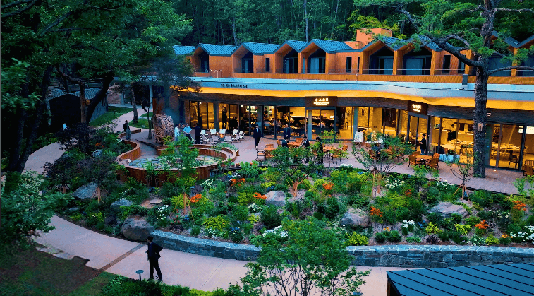 ✓ 방문자센터, 개별 숙박동, 트리하우스, 레스토랑·카페, 체험시설(유아숲체험원, 무장애 숲길, 계곡 피크닉장 등)으로 구성된다.