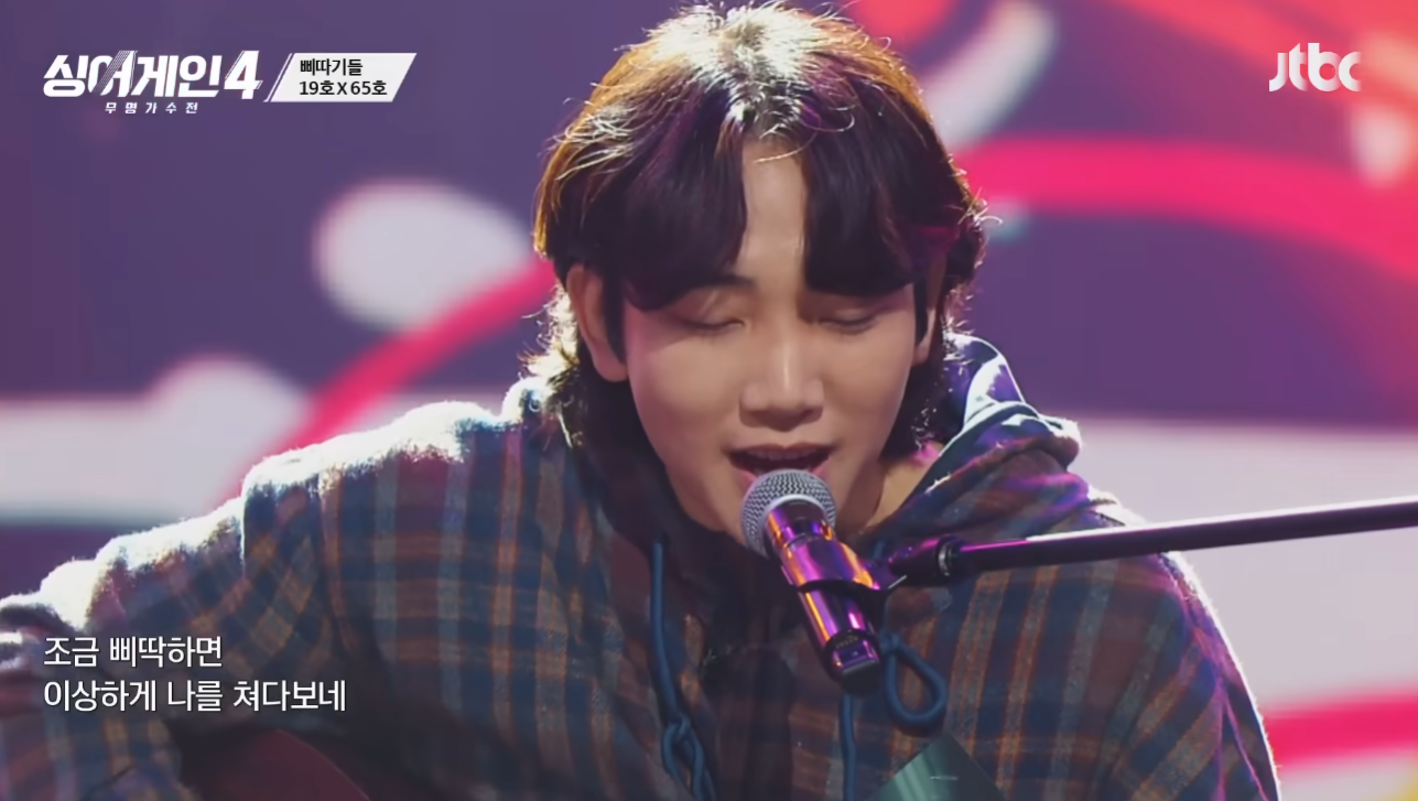 '삐딱이들'이라는 팀명으로 등장한 19호와 65호는 강산에의 원곡을 완전히 자신들만의 스타일로 재해석했습니다. 두 참가자는 기타를 직접 연주하며 무대를 꾸몄는데, 단순히 노래를 부르는 것을 넘어 곡의 메시지를 온몸으로 표현하는 듯한 퍼포먼스를 선보였습니다.