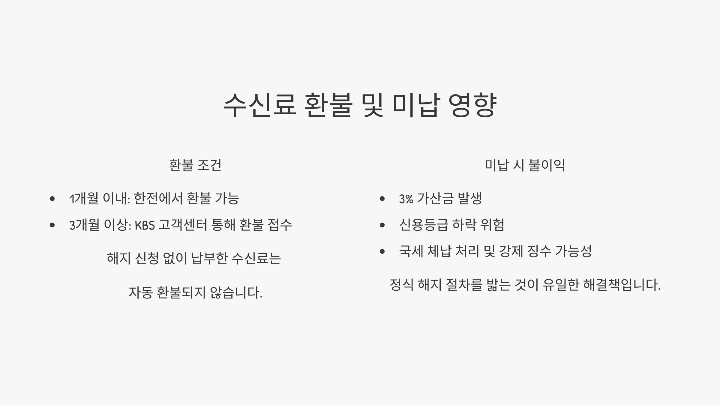 - 3개월 이상: KBS 고객센터 통해 환불 접수