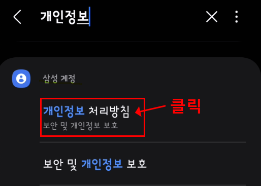 설정 화면 상단 돋보기 아이콘을 눌러 ‘개인정보’라고 검색해 보세요.